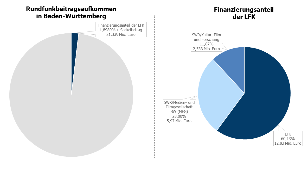 Den Landesmedienanstalten steht bundesweit ein fester Anteil am Rundfunkbeitragsaufkommen zu, der sich nach der Bevölkerungszahl der jeweiligen Länder verteilt. In Baden-Württemberg wird dieser der LFK grundsätzlich zustehende Anteil jedoch bereits vor der Auszahlung gekürzt: Ein erheblicher Teil wird im Wege eines gesetzlich geregelten Vorwegabzugs einbehalten und an den Südwestrundfunk (SWR) abgeführt.