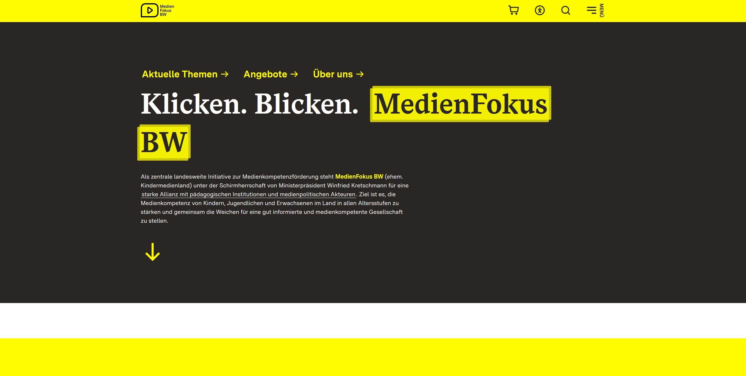 Unter dem gemeinsamen Dach der Initiative MedienFokus BW (zuvor: Kindermedienland Baden-Württemberg) werden zahlreiche Projekte, Aktivitäten und Akteure aus dem Bereich Medienkompetenz in Baden-Württemberg zusammengebracht.