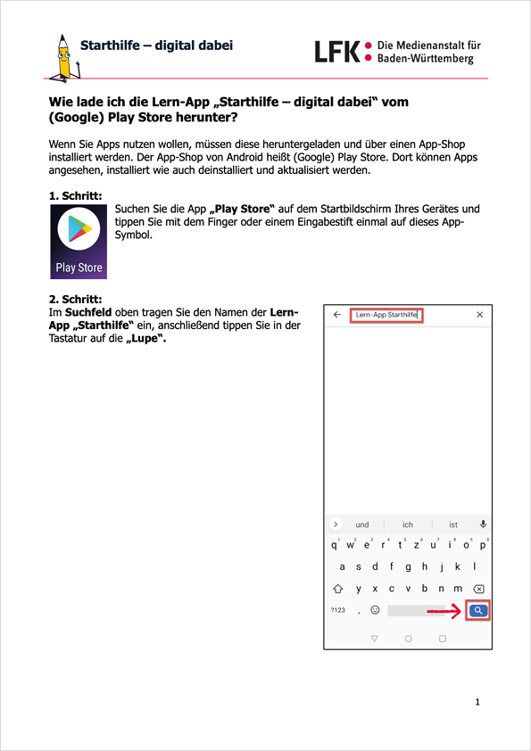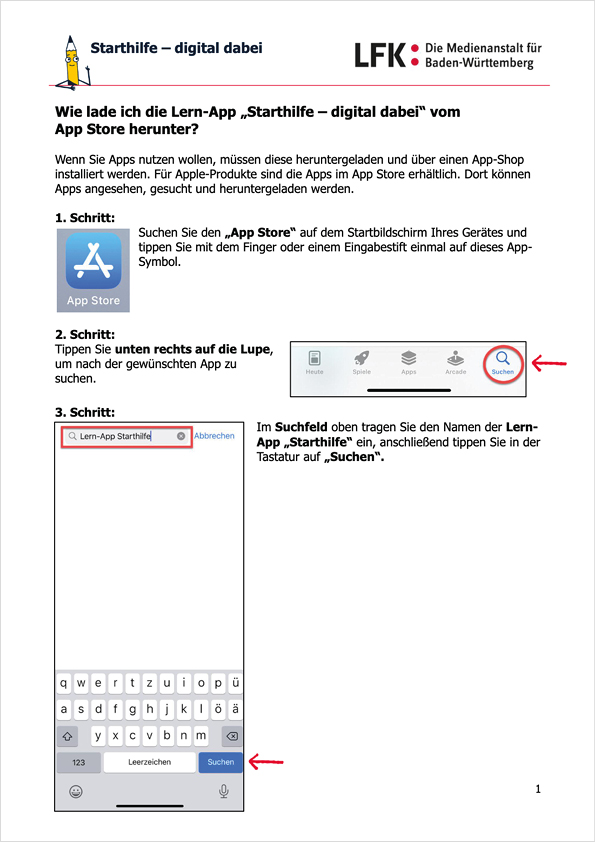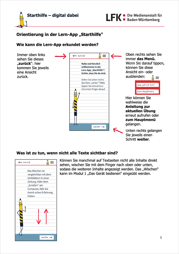 Informationsflyer über die von der LFK entwickelte kostenlose Lern-App, welche sich gezielt an Seniorinnen und Senioren richtet, die erste Schritte im Netz mit Smartphone und Tablet lernen möchten. Im Rahmen vieler spielerischer Übungen können sie Schritt für Schritt in ihrem eigenen Tempo die App erkunden und lernen so die Bedienung und den Funktionsumfang des eigenen Geräts, die Nutzung von Apps sowie den Umgang mit Messengern – ohne etwas falsch oder kaputt machen zu können. Im Programm ist alles sehr einfach und überschaubar gestaltet. Über den QR-Code auf dem Flyer kann die App direkt herunter geladen werden.