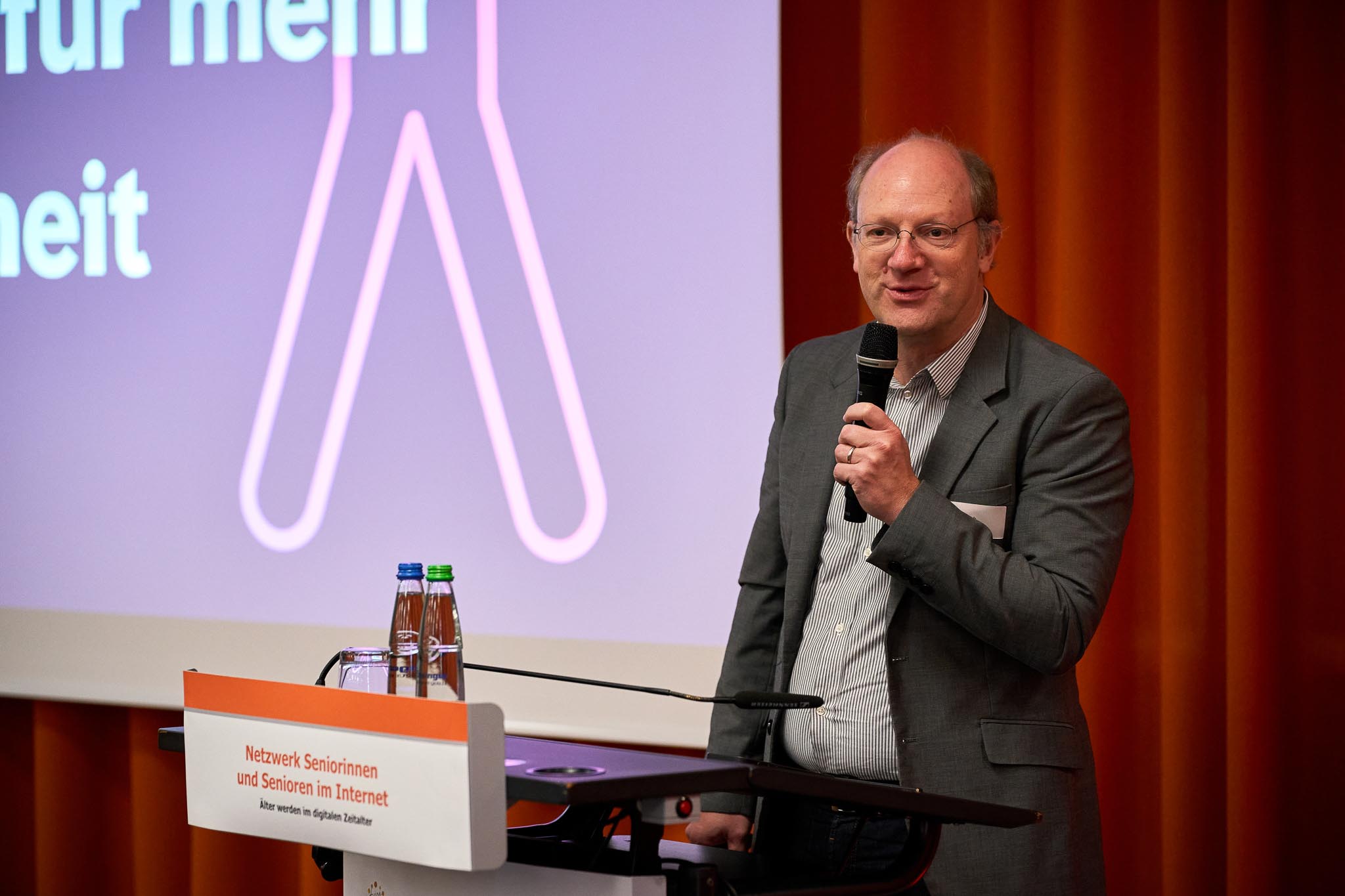 LFK-Präsident Dr. Wolfgang Kreißig betonte in seiner Begrüßung die Bedeutung der Zusammenarbeit zwischen den verschiedenen Institutionen: „Das Netzwerk ‚Seniorinnen und Senioren im Internet‘ zeigt eindrucksvoll, was entstehen kann, wenn unterschiedliche Institutionen gemeinsam Verantwortung übernehmen. Mein besonderer Dank gilt allen Partnerinnen und Partnern, die sich über viele Jahre hinweg mit großem Engagement für digitale Bildung und Teilhabe älterer Menschen eingesetzt haben.“