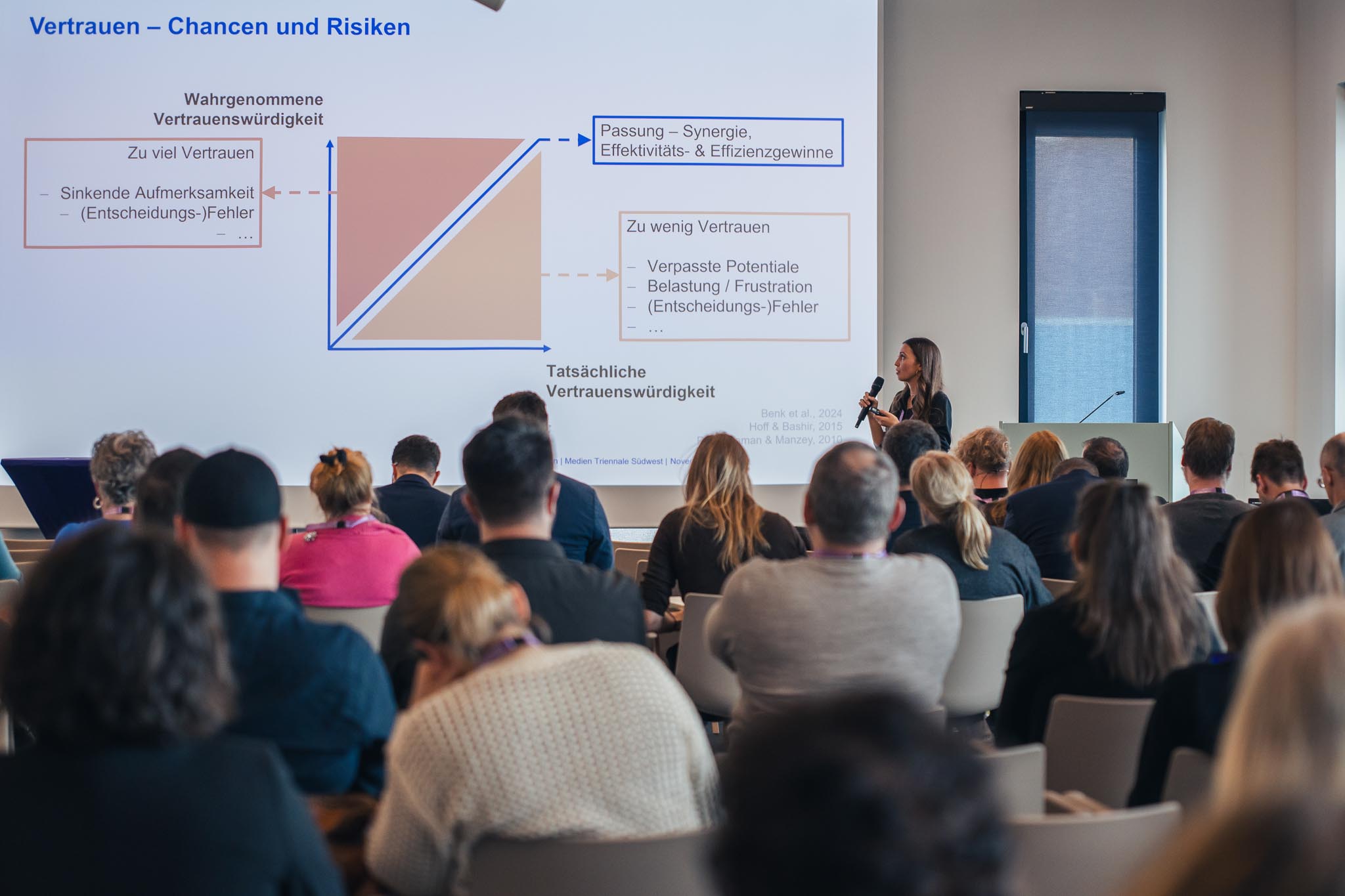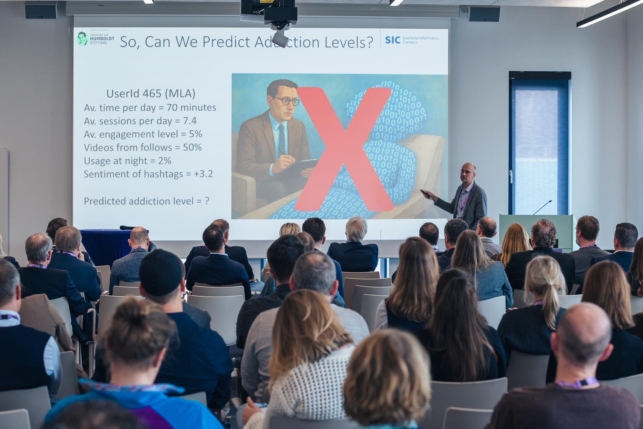 Bereits am Vormittag boten praxisorientierte Masterclasses konkrete Handlungsempfehlungen für den verantwortungsvollen Einsatz von KI-Tools und den Umgang mit Deepfakes. Die anschließende wissenschaftliche Keynote widmete sich der Frage, wie man Nutzungsdaten sozialer Medien sammeln kann, um Phänomene wie Social-Media-Sucht zu verstehen.